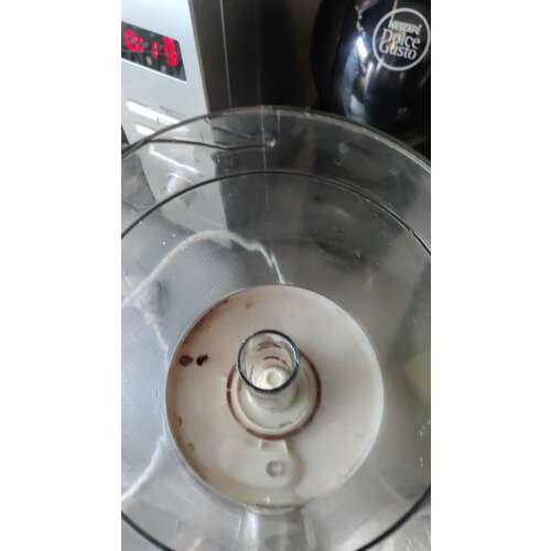 Ik heb hem zelf ook, na gebruik was ik hem met de hand af. Tussen de bodem en dat witte ding (waar bij jou het vuil zit) komt dan afwaswater en dmv schudden enz krijg ik dat altijd wel schoon. Bij de handgreep zit een gaatje en daar laat ik dan het water weer weglopen. Super apparaat maar dit is een beetje onhandig gemaakt.