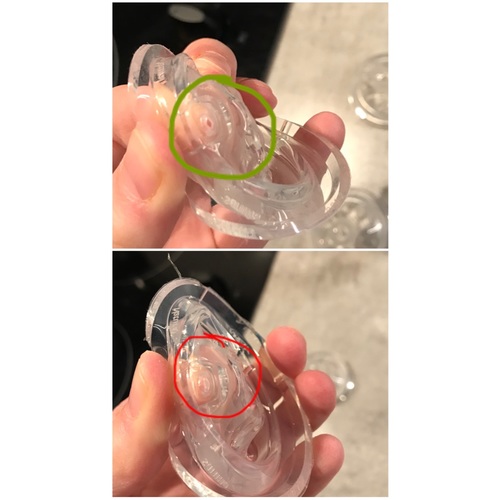 Toen kwam ik er achter dat er ook nog speen 0 is, die besteld. 2 spenen in de verpakking en met 1 gaat het super goed en 1 zuigt hij steeds vacuüm... we doen precies het zelfde en letten er al op dat we de fles niet te strak dicht draaien... Maar met 1 speen gaat het nu dus wel goed en 1 niet..