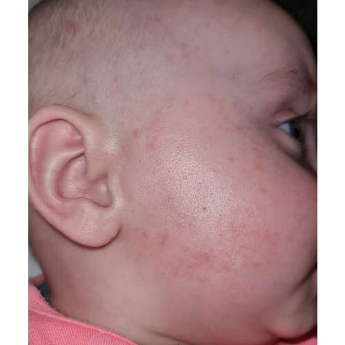 Wij hadden ook met pindakaas een raar verloop: eerste paar keren niks. Toen een dag erna uitslag en toen ineens gelijk. Wij hebben nu een doorverwijzing voor een test gekregen.