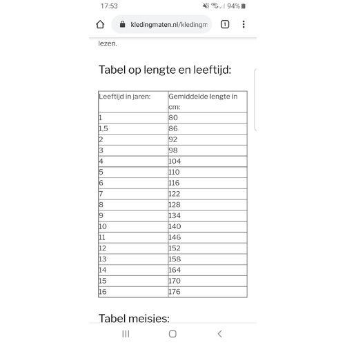 Klopt hier niks van, hier is onze oudste bijna 5 en zit maat 116/122 en onze 2e is 3,5 en zit in maat 110/116.. wij hebben hier sowieso bijna alles 2ehands en ik pak gewoon een broek en shirt en daarmee meet ik alles op. En welke maat er dan in staat dat maakt dan niet uit haha. Maar het is heel lastig omdat die maten soms zover uiteen lopen.