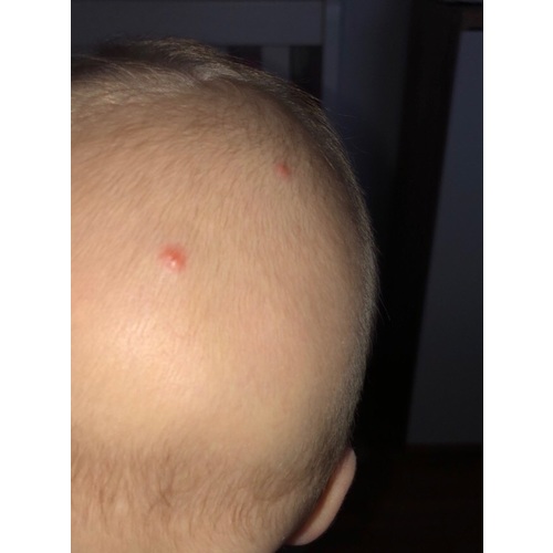 Nu zijn het er 4 en zijn ook 3 keer groter dan toen het begon. Ziet er uit als soort blaartjes. Ze heeft het alleen maar op haar hoofdje.