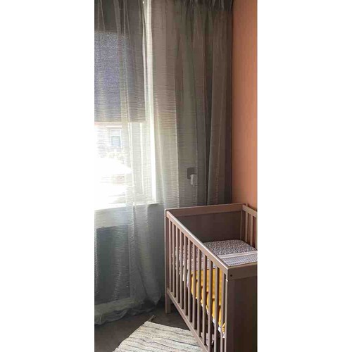Wij hebben niet verduisterende plissé gordijnen en daarover overgordijnen tot aan de grond.