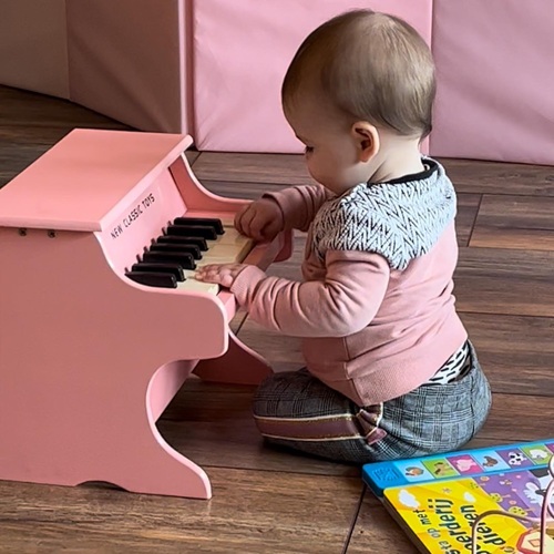 Er is ook een andere bovenkant zonder tuigje, waardoor je dochter er zelf op en af kan klimmen. Hij is aan de lage kant, laag genoeg om daarop te klimmen.