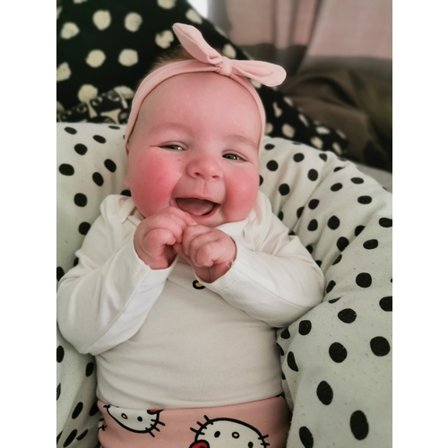 Ze is alweer bijna 4maanden maar mevrouw zat zo te smakken 😂 en t eten onder me neus weg te kijken zijn we sinds gistere begonnen! Wat sneu dat ze t zo slecht op kv deed. Dankjewel hier word ze ookal groot bijna uit 68 gegroeit.. En dat met bijna 4maanden.
