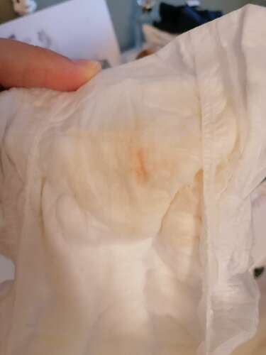 Mijn zoontje had dit de eerste dagen na de geboorte en waren uraten, neerslag uit de blaas. Wij moesten hem toen bijvoeden voor meer vocht.