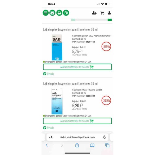 Ik had de onderste, bestelde het van https://www.arzneiprivat.de/product/sab-simplex-suspensie.40376.html?language_code=nl