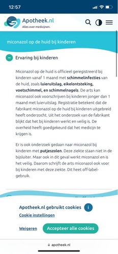Miconazol kan je bij de apotheek halen! Dit gebruiken wij 1 x in de zoveel tijd 2 x per dag aansmeren heel licht en dan sudo erover heen. Dit gebruiken wij bij luieruitslag. Ik zal het wel eerst overleggen navragen of dit geschikt is voor jou kleine. Als je het niet goed gebruikt kan het namelijk wel “gevaarlijk”zijn!