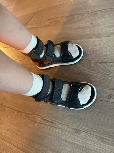 Hij is inmiddels ruim 2,5 jaar en draagt nog steeds het grootste deel van de dag zulke sandalen/schoenen. Hij loopt nu ook op blote voeten steeds beter.