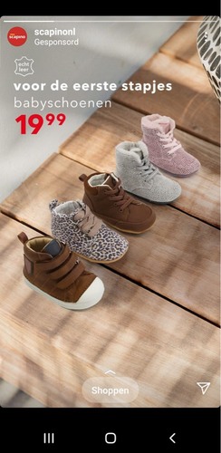 Nu heb ik vans met klittenband gekocht in de aanbieding, waren geloof ik 23eu en nog gevoerde leren laarsjes van een duur merk (maar dan ook gekocht in de uitverkoop) maar inmiddels loopt ze en wil ze eigenlijk ook niet meer in de buggy zitten.