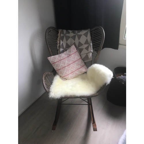 Ik heb deze van riet. Met daarin dus een schapenvachtje en lekkere kussens (meer dan op de foto) hij is super fijn en zit heel lekker. Ik heb er trouwens wel ook een poef bij voor m鈥檔 voeten want anders bungelen ze.