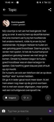 Die dingen gebeuren, zelfs bij de beste ouders. Ons zoontje is ook eens van ons bed gerold. Volgens mij met 10 maanden zoiets. Hard gehuild en oh wat voelde ik me toen ook schuldig... maar hij heeft er verder niks aan over gehouden en sinds hij kan lopen en klimmen valt hij nog veeel vaker!