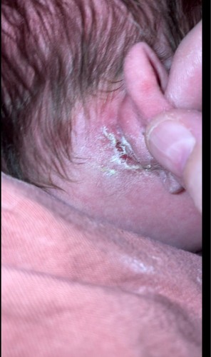 Mijn dochter had het ook soms daar. Waarschijnlijk niet goed afgedroogd of door dr natte haren. Hier ging het eigenlijk snel vanzelf weer weg, maar ze had er ook geen last van.