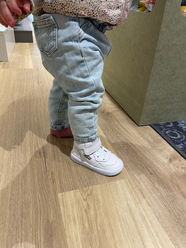 Onze zoon ging lopen met maat 18 maar liep vanaf maat 19 ook wel met wat stuggere zolen (Converse/Nike). Bij mijn dochter nu hetzelfde systeem.