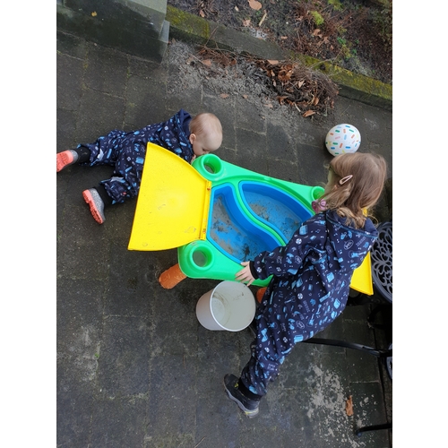 Dochter heeft zelfs in de winter nog buiten met haar watertafel gespeeld (met warm water er in) en bleef lekker droog in haar pak.