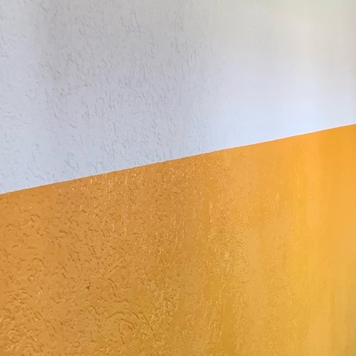 Wij hebben dezelfde structuur op de muur zitten. Ik wilde heel graag een vlak maken op de muur. Dus ik heb eerst het vlak afgeplakt en ben daarna aan de slag gegaan.