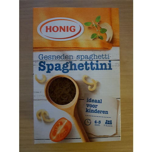 We doen het niet elke keer met spaghetti hoor, soms krijgt hij het ook gewoon fijn gesneden.