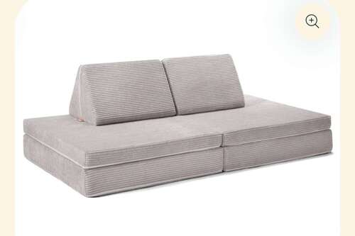 Ik had vroeger zelf zo’n soort bank (wel anders en ouderwetser, haha) en heb daar echt onwijs veel en lang mee gespeeld /plezier van gehad. Het fungeerde als bank, als matrasje bij filmpje kijken, maar werd ook bij echt alle speel activiteiten betrokken: het was een hut, een boot, een schoolbank, huis voor m’n Barbies, noem maar op. Vriendinnetjes die kwamen te logeren daar sliep ik dan samen mee op dat bankje. En toen ik tiener werd was het heel ‘cool’ om een bank op je kamer te hebben.