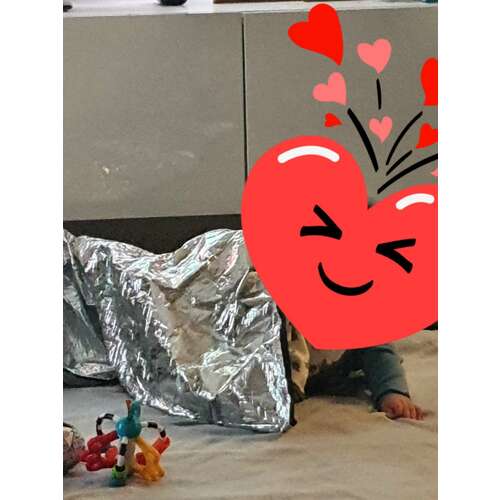 We hebben ook een houten ring met verschillende soorten stofjes aan. Lijkt zo een beetje op zo'n staaltjesring die je terugvindt in meubelzaken als je een zetel wilt kopen en wilt voelen aan de andere uitvoeringen. Vond ze ook heel leuk. De houten ring zelf aangekocht en dan wat verschillende stofjes (zijde, katoen, wol, leder, etc.) verzameld en er aangehangen. Wel onder toezicht mee laten spelen dan, maar het hoeft dus niet veel geld te kosten en je kunt zelf ook creatief proberen te zijn 馃檪.