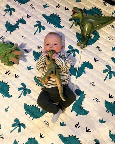 foto van onze kleine dino fan op zijn speelkleed erbij gevoegd, volgensmij is dit kleed een heel eind het zelfde.