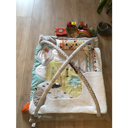 Wij hebben deze gekregen, dacht gekocht bij bol.com. Zitten van die speeltjes bij om aan de lusjes te hangen. Ik wissel die af. Heb dus deze op de grond, maar het kleedje is wat dun vind ik, dus heb er een boxkleed onder gelegd. Ze is nu 5 mnd bijna en merk dat ze soms hier liever speelt dan in de box. Denk omdat ze heel graag zou willen kunnen tijgeren 😁🐯. Vind deze wel fijn omdat t niet van die extreem felle kleuren heeft. En je bergt m makkelijk op ook. En ze kan nergens vanaf vallen! Nog even kijken hoe fijn het is als ze straks wel tijgert en kruipt 😅