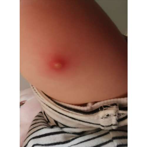 zat op een vervelendr plek maar ze rade me aan om er niet aan te zitten dan ging die zelf wel stuk en weg . Dat klopte ook naar een week 1.5 knapte die open en trok keurig weg