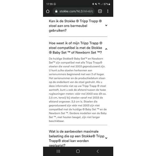 Je hebt het model voor 2003 en erna. Wij hebben 1 model tweedehands gekregen die voor 2003 was. Nieuwe rugleuningen los besteld en deze bevestigd. Hier kan de newbornset gewoon op. De stoel die na 2003 gemaakt was en die ik heb gekregen, had de juiste rugleuning en past de set ook op.