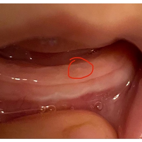 Vaak kun me het ook voelen, het voelt als een hard botsplintertje van de buitenkant. Tandvlees is wat wit door de eruptiekracht en daarmee druk van het tandje. Tandvlees mag je al voorzichtig poetsen. Is misschien wat gevoelig, maar dan komt ie wel het snelste door.