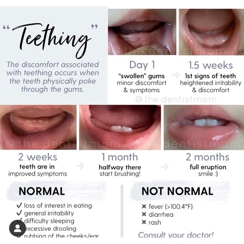 Het kan ook het begin zijn en dan toch nog héél lang duren. Bij onze zoon duurde het bijna 3 maanden van het eerste moment dat er echt iets zichtbaar werd en het doorkomen van de eerste tand.