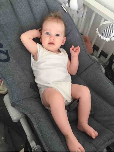 Vandaag is deze dame precies 11 maanden en over twee weken gaan we weer voor controle. Haar hoofd blijft klein, maar groeit wel gelukkig. Haar ontwikkeling is prima, ze staat sinds los en loopt langs de meubels in huis.