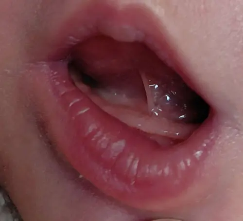 Lastig te zien zo... Maar lijkt erop alsof jullie kindje de tong wel mooi naar het gehemelte kan liften. Op het blote oog zou ik zeggen dat hij niet te kort is. Maar ik ben geen professional!