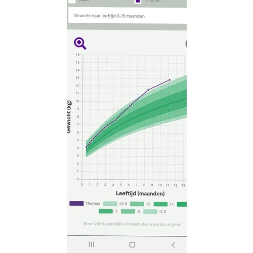 Je zou de groei zelf kunnen bijhouden op de curve van het WHO. Die is specifiek voor bv baby's, die groeien anders dan kindjes die kv krijgen (en de curve die het cb hanteert is gebaseerd op een mix van bv en kv baby's). Daarin kun je zien hoe zijn groei zich verhoudt tot andere bv baby's!