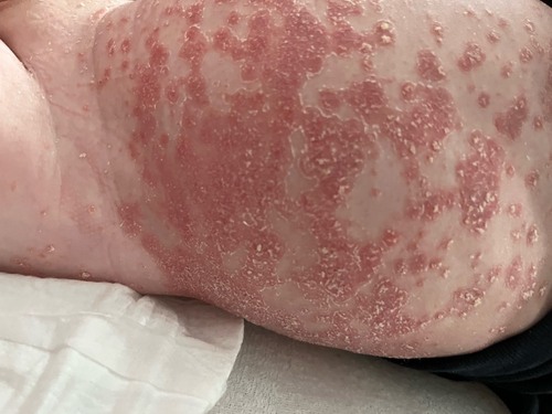 Ik loop bij dermatoloog gaan nu voor een ander ziekenhuis. Ze laten me maar wat heen sollen en hebben weinig tijd. Ik moet zelf continu overal achteraan. Het is erg ontstoken inderdaad hij heeft geen jeuk zo raar. Ik hoop maar dat dit zo blijft hij is nu 5 maanden oud.