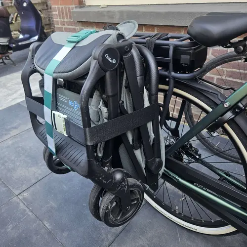 Een steco rugzakdrager werkt ook goed! En dan met een setje snelbindspanners (geen idee hoe het heet) erbij en de buggy staat muurvast!