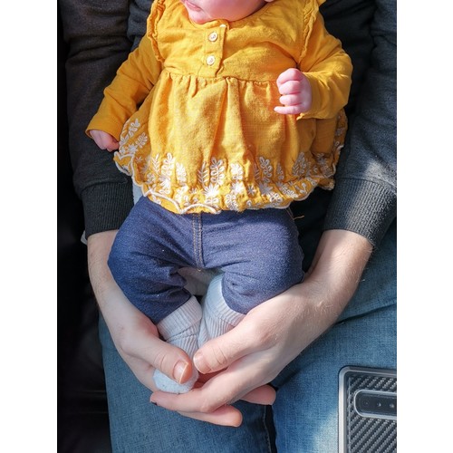Ja het heeft te maken met die stugge spijkerstof die op dat tere huidje schuurt.. Die stof doet ook helemaal niet mee en een baby geeft dat natuurlijk niet aan, maar vind een legging, boxpakje of wat dan ook veel lekkerder.. of inderdaad de joggingbroekjes die op een spijkerbroekje lijken..