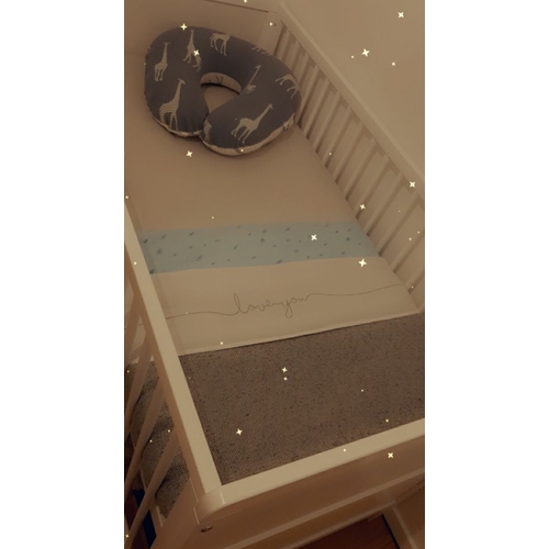 Laken ook jollein 120x 150 (zodat het goed strak onder het matras kan. Met 100x 150 ben ik bang dat het niet strak genoeg onder het matras gaat.)