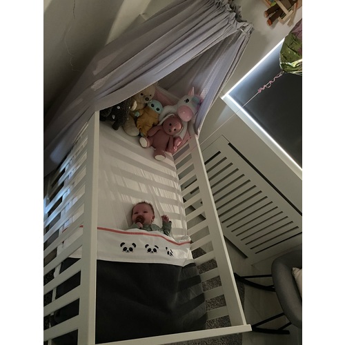 Wij hebben een meegroeibed. Onze dochter is 4 weken. Wij hebben het lakentje en dekentje dubbel gevouwen. (Dezelfde maten als ADJVR aangaf). Lekker warm en ze kan helemaal onder in haar bed liggen.