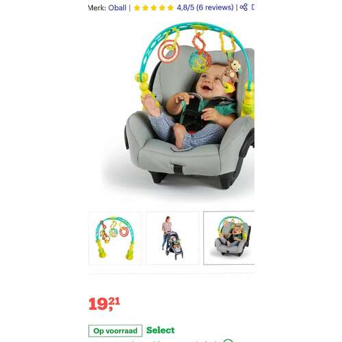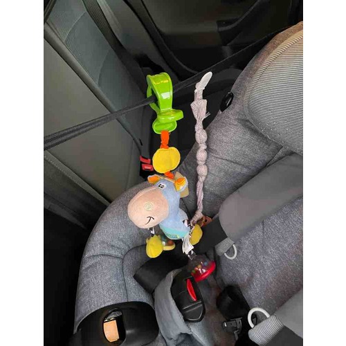 Wij hebben deze gekregen. Kun je overal aan vastmaken, maxicosi, kinderwagen speelmat etc... nu zonder doos bij bol.com voor maar 19euro, normaal €30