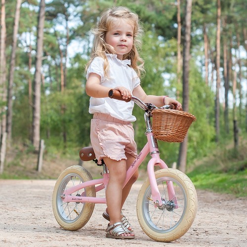 Ik zag laatst een bij ons in de buurt een loopfiets met zijwieltjes. Misschien is dat een optie?