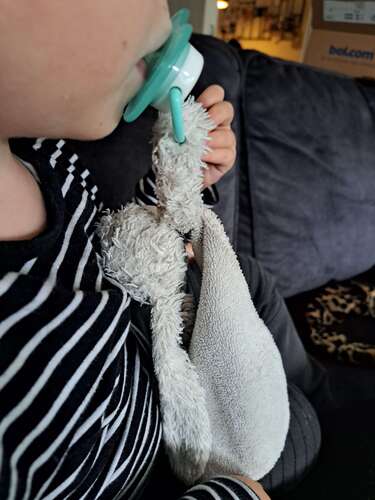 Voor ons zoontje werkte een knuffel niet. Hij stopte zn pluizig beest de hele tijd in zn mond en was geen succes hahah. Dus hier al vanaf het begin speen doekje van lodger🙃
