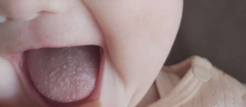 Heeft ze geen koorts of pijn verders tijdens het eten en drinken? En op de rest van haar lijfje geen blaasjes? Blaasjes in de mond kunnen ook wijzen op hand-mond en voetziekte. Maar zoveel plekjes op de tong is wel veel daarvoor misschien. Maar als je kindje verders vrolijk en niet ziek oogt zal het dat hoogstwaarschijnlijk niet zijn denk ik