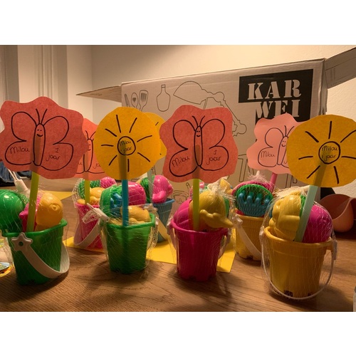 Niet zo鈥檔 goede foto, maar ik heb mini zandbak-speelgoed gekocht bij de action omdat ze heel vaak in de zandbak spelen bij de gastouder 馃槉 Daarin een rietje als een soort stokje en even iets op getekend. Ik ben geen knutselwonder 馃檲 De kindjes waren hier heel blij mee!