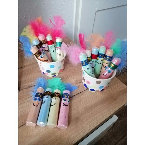 Mocht je van knutselen houden. Indianen stoepkrijtjes. Dit was onze traktatie toen meneer 1 werd.