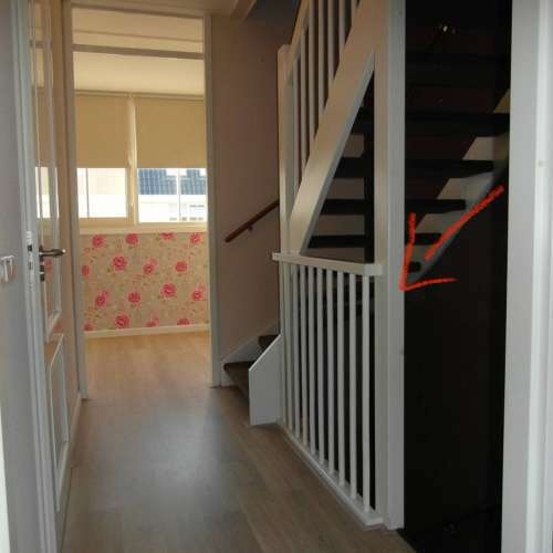 Als ik thuis ben zal ik wel even een foto maken hoe het traphekje bij ons zit..