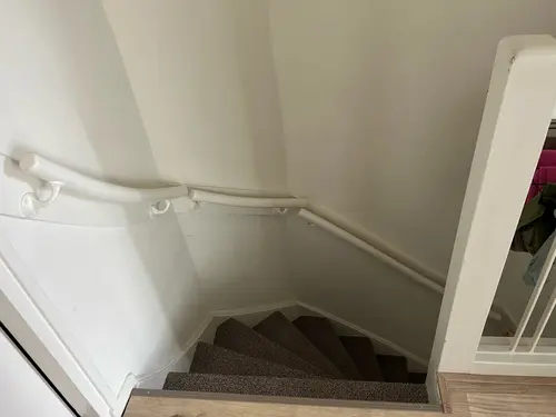 Ik heb de mijne gekocht bij traphekjes.nl. Als je hen een foto stuurt van de situatie, geven zij advies over welk hekje het beste is en welke onderdelen je hiervoor nodig hebt. Ik vond dat ideaal, want hier ook een beetje een rare opstelling van trap overloop en ik kwam er zelf niet uit.