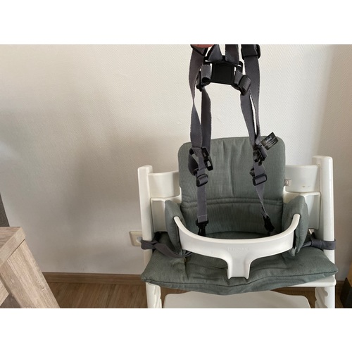 Wij zijn juist wel voor triptrap tuigje gegaan, 5puntsgordel. Ik denk maar zo: straks verkopen we de hele set, dan krijg ik ook een deel terug van het tuigje en koste die dus de helft minder.
