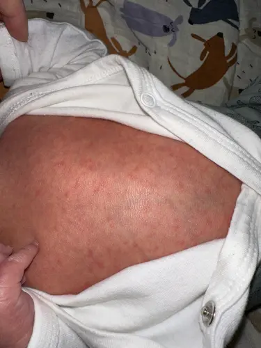 Doordat hij wel nog goed drinkt, alert is, weer normale temperatuur heeft. Denken ze aan warmte uitslag. Ik moet hem goed in de gaten houden en koel kleden.