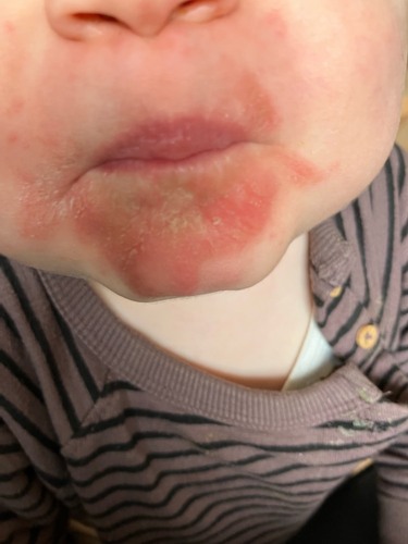Mijn zoontje (4,5 jaar) heeft van jongens af aan meerdere voedselallergieën en toen we laatst bij de allergoloog waren en ze zag dat hij zelf de huid onder zijn lip een beetje kapot bijt en likt werden we meteen gewaarschuwd. Als er voedingsmiddelen via de huid binnenkomen, dan kan je een nieuwe voedselallergie ontwikkelen. Wij smeerden sowieso de huid voor het eten in met vaseline cetomacrogol.