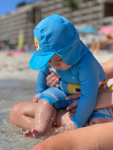 Decatlon heeft uv pakjes, tip is wel een aaneensluitend pakje zit je ook niet met shirtjes die omhoog kruipen. Als je het helemaal top wil kijk dan voorlange mouwen en broekspijpen. Dan heb je er ook minder omkijken na met smeren alleen handjes vietzooltjes en gezicht. En mocht je het water in gaan zee of dingen. Zorg dan ook nog eens voor een zwemvestje. Desnoods via vinted, daar heb je ook plezier van als ze groter worden en beginnen te kruipen. Dan hoef je er ook niet constant tegen aan, en ook ben je erbij in het water je vergeeft het jezelf nooit als er wat gebeurd.