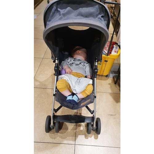 Hij vond de buggy echt verschrikkelijk en zat liever in de kinderwagen.