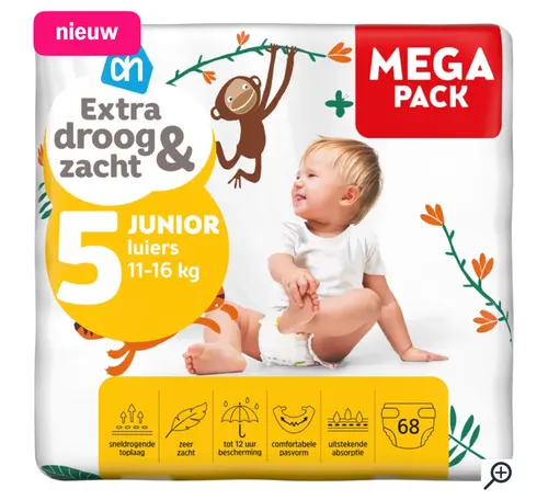 Ik ben helaas niet tevreden over het nieuwe model. Mijn dochter lekt plots vaker door, met dezelfde verschoonroutine. Ook heeft ze meer luieruitslag. Echt balen, zo lang tevreden geweest over de AH luiers 😢